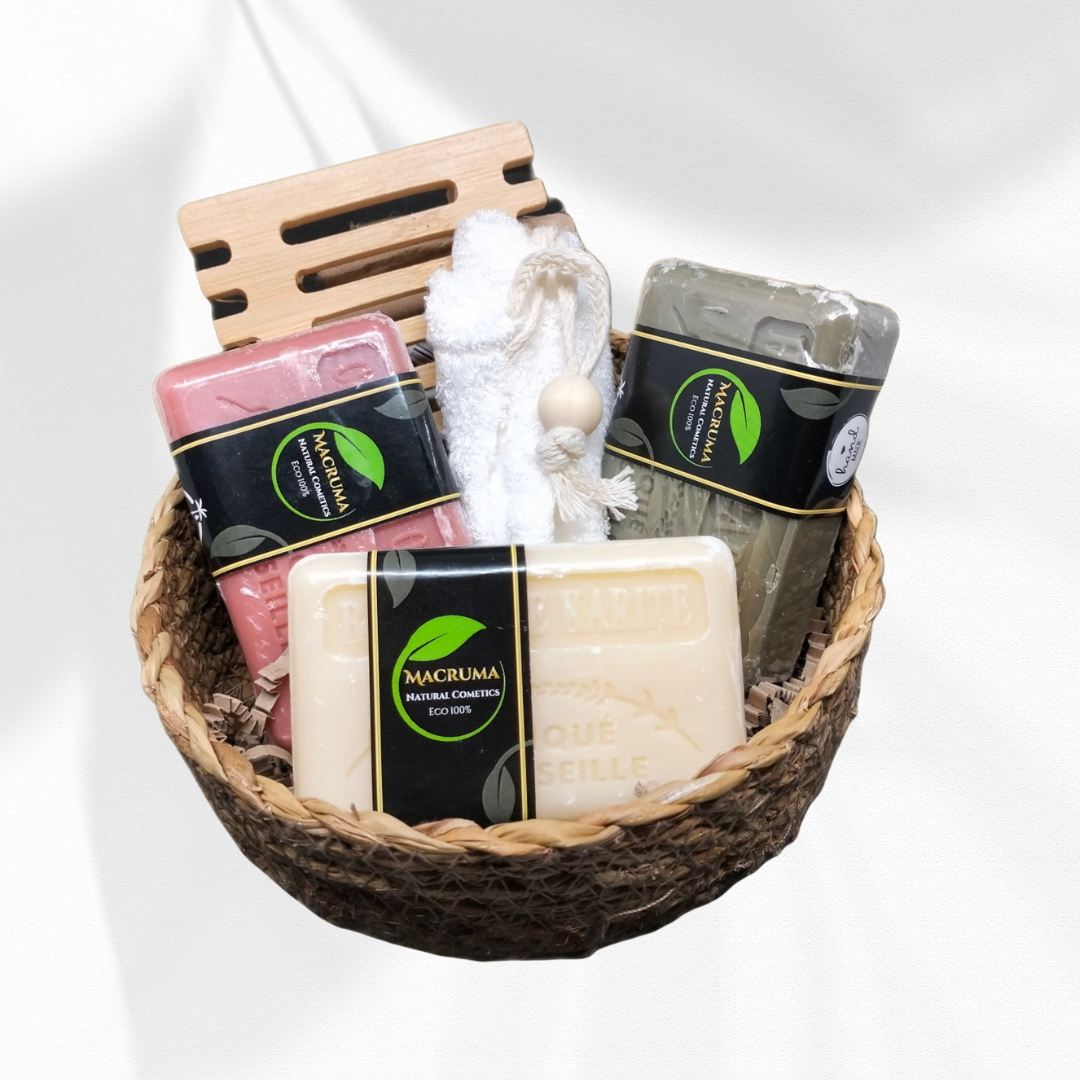 Descubre nuestra exclusiva cesta regalo que combina tradición y funcionalidad. Incluye tres auténticos jabones de Marsella artesanos, elaborados con métodos tradicionales que respetan la piel, acompañados de una elegante jabonera de madera natural. Cada jabón ofrece una limpieza suave y efectiva, mientras que la jabonera de madera proporciona durabilidad y un toque de calidez a tu baño. Un presente sofisticado para quienes valoran la calidad artesanal y los productos naturales.